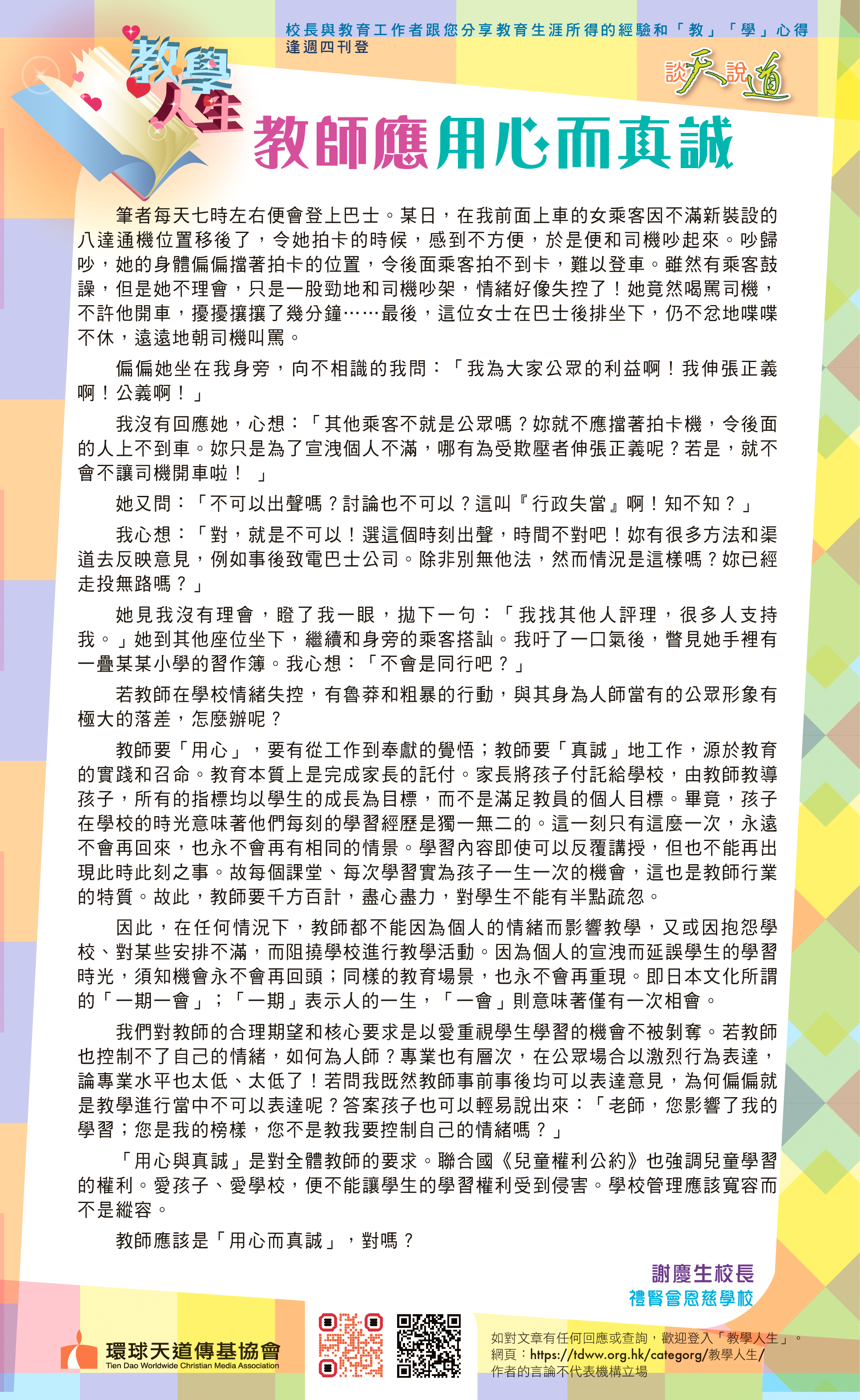 關心自己的工作,為學生著想的真正教育工作者,絕不易為。共勉之!