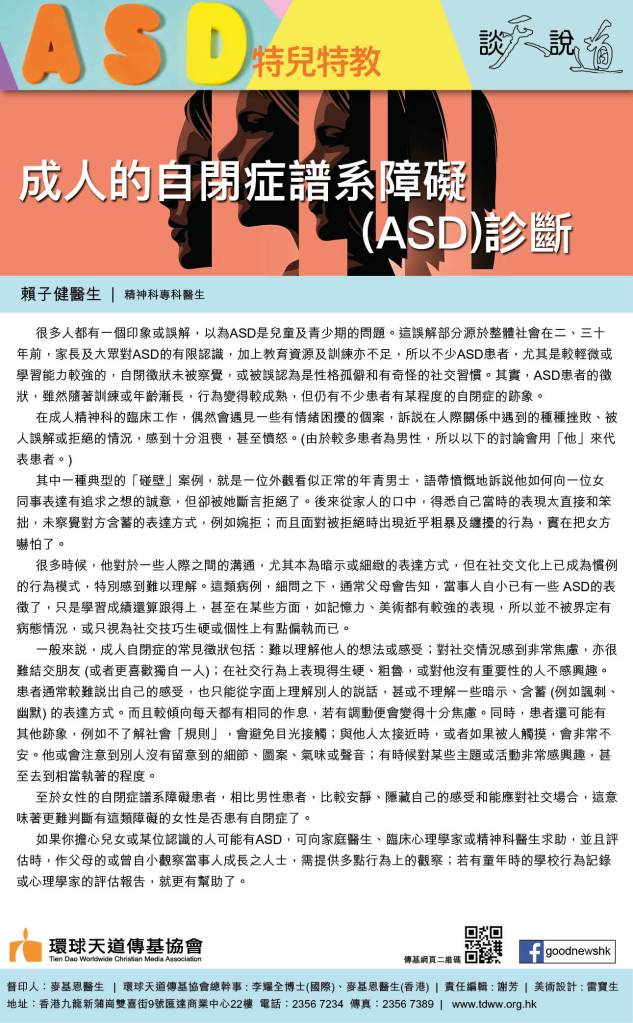 承蒙亞洲精神藥物學醫學會的委托,在過去一年,把學會的一個特別研究ADHD的專家小組組員的文章,交由環球天道傳基協會在「談天說道」版面上的專欄(逢星期三刊登)發表,內容既介紹有關科研進展,又提供一些有效專業方法去幫助患者調適,以及為他們身邊教養或照顧之人士提供正確信息和教育,為關懷有特殊需要的群體作出不少貢獻。現將各專家的文章彙集成書﹕《大器晚成—ADHD特兒特教》,以饗讀者。