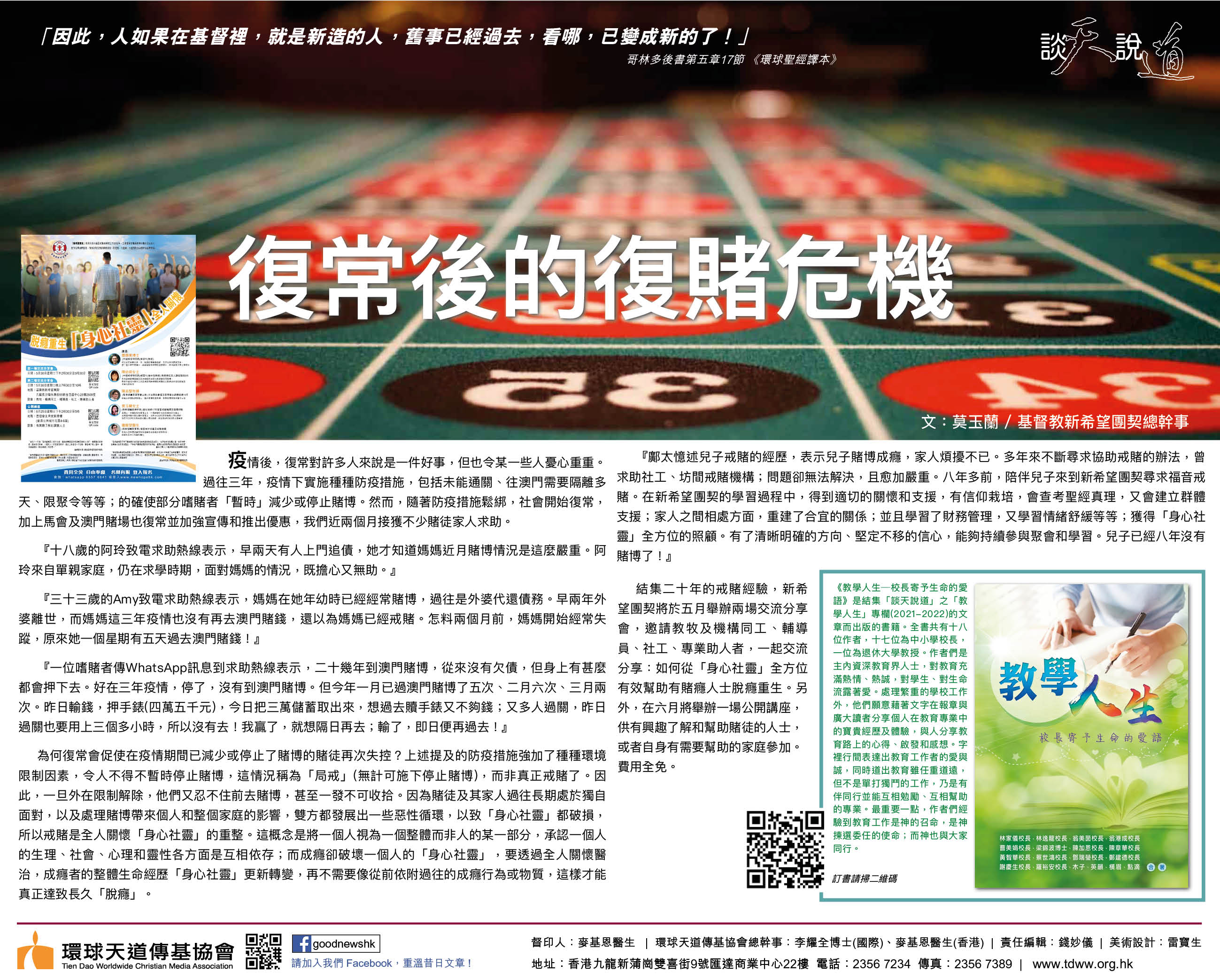 「神要擦去他們一切的眼淚;不再有死亡,也不再有悲哀、哭號、疼痛,因為以前的事都過去了。」(啟示錄第二十一章4節)