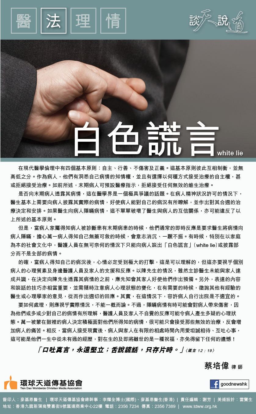 各位仍在前線拼搏、努力的戰友,好好珍惜每一個能夠為主作見證、傳福音的機會;不論對方是朋友、同事、病友或鄰舍。因為你和我都不知道生命還可以走多遠,但我們確知──唯有福音能真正拯救靈魂。