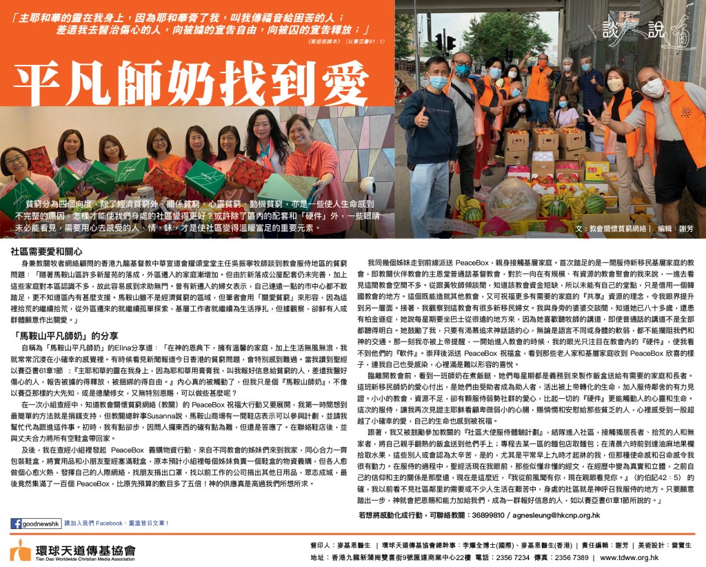 自疫情爆發以來,工福所遇見的基層鄰舍,都比過去多,他們生活的艱難是超乎想像的,有睡在滲漏糞渠旁的母女、有曲身在廚房頂部儲物格的老人…這些彷彿被囚在夾縫中的生命,本是尊貴的。然而,不論是單親小孩、被遺忘的隱青、失婚的婦人、長期病患的中年漢、被賭博困擾的家庭、獨居的老人…似乎都活得沒有尊嚴、沒有盼望。我們沒有特別的才幹或恩賜,卻是「看見這許多的人,就憐憫他們」,不忍丟下不顧,因這些不是事工,而是有血有肉的人。憐憫,是要親身接觸受苦的鄰舍,細聽他們的心聲、聆聽主給我們的呼召。
