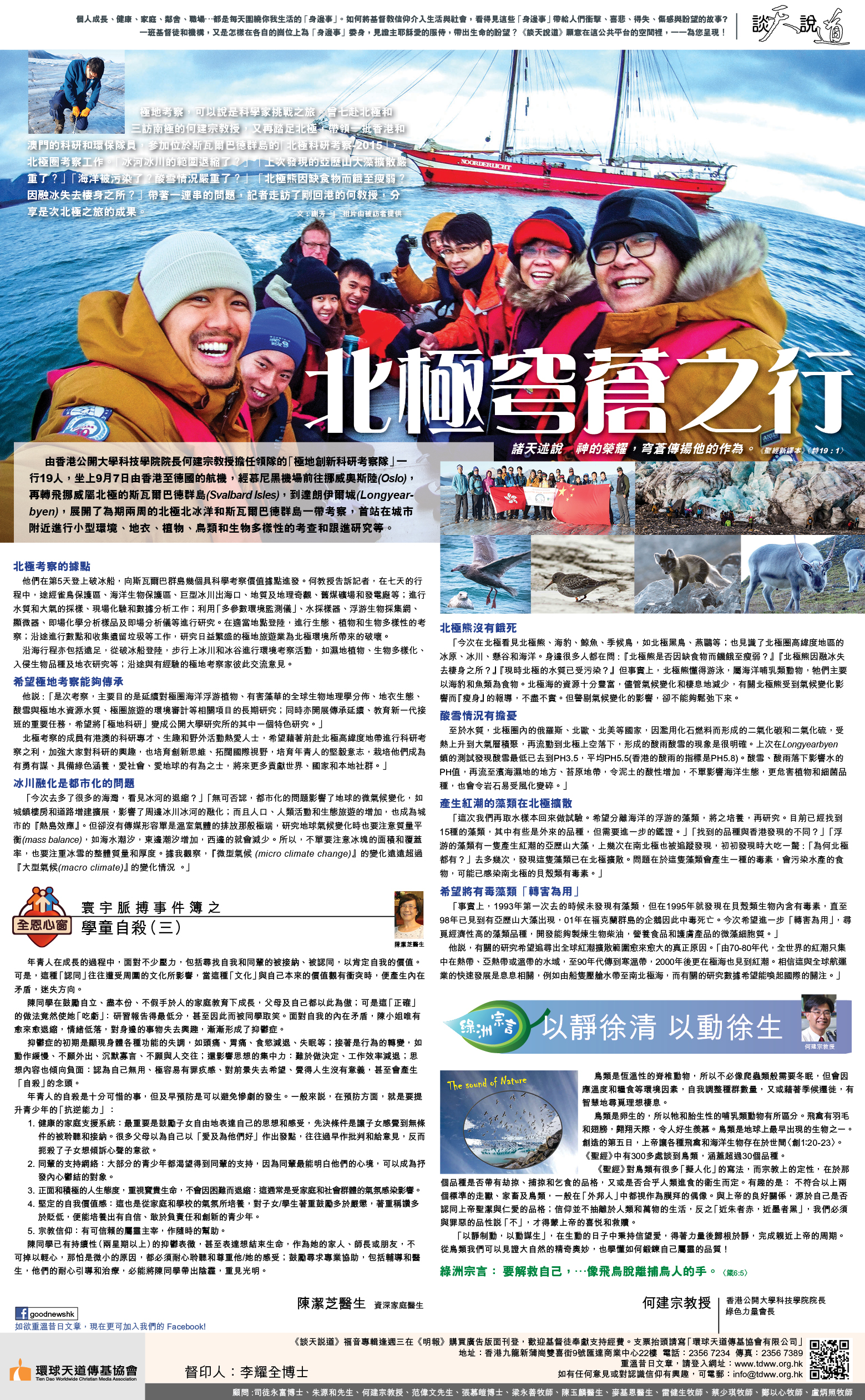 《談天說道》福音專輯逢週三在《明報》購買廣告版面刊登,本期為2015年10月21日,歡迎奉獻支持經費。