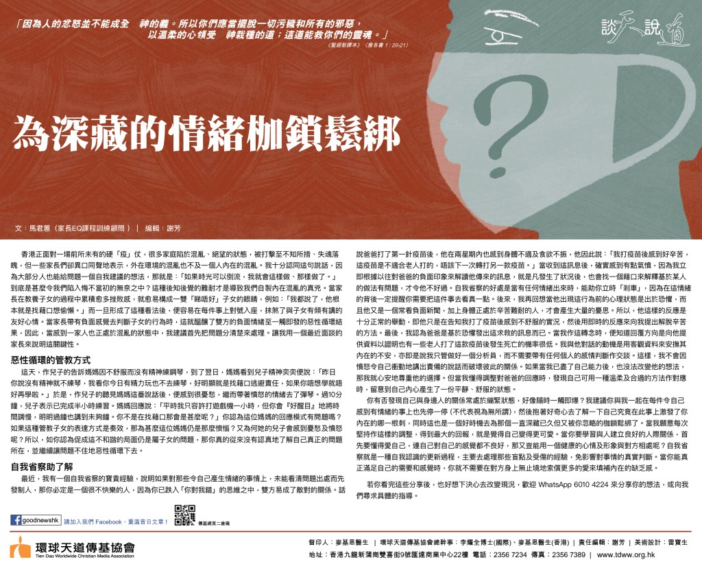 文﹕馬君蕙(家長EQ課程訓練顧問)