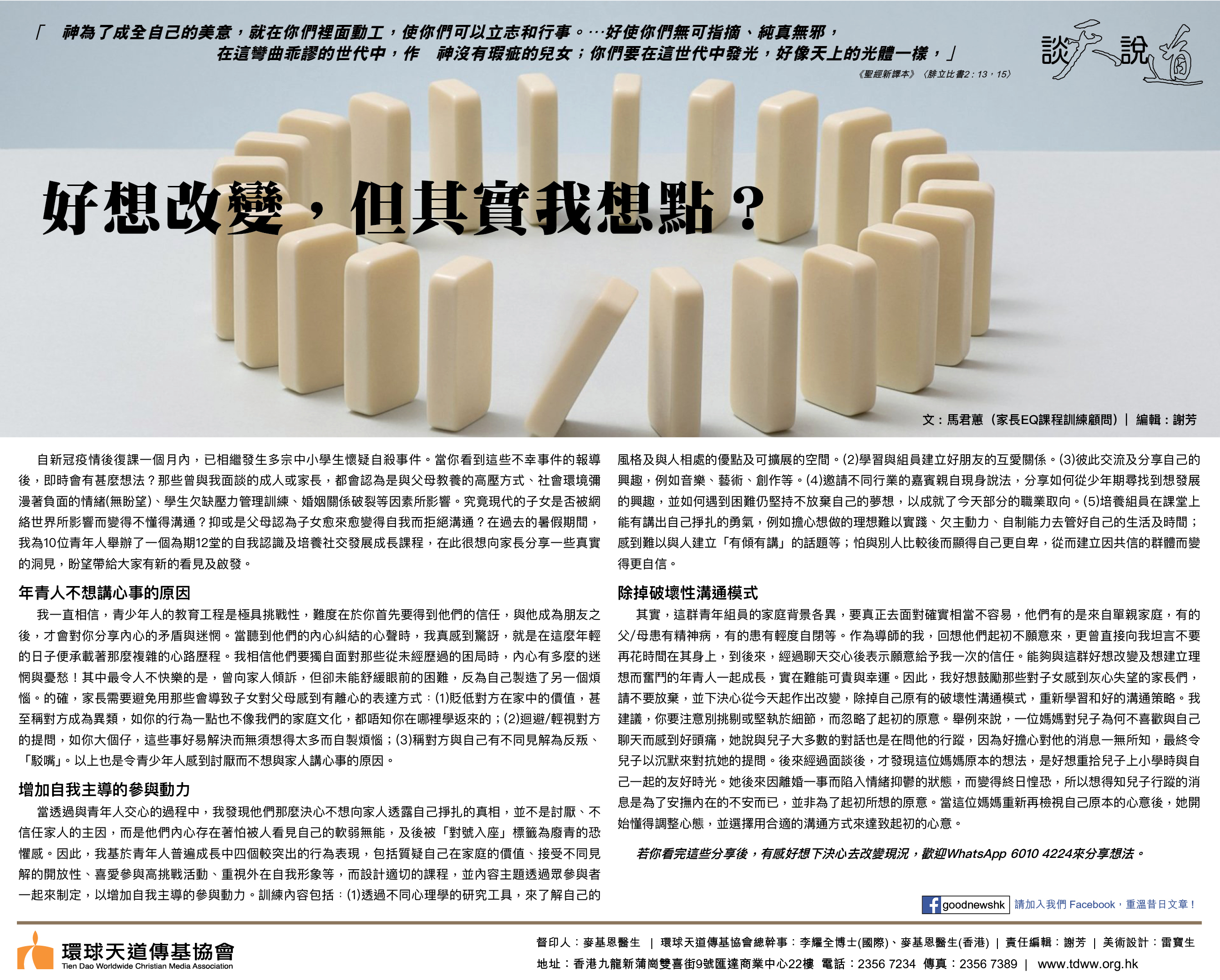 文﹕馬君蕙(家長EQ課程訓練顧問)