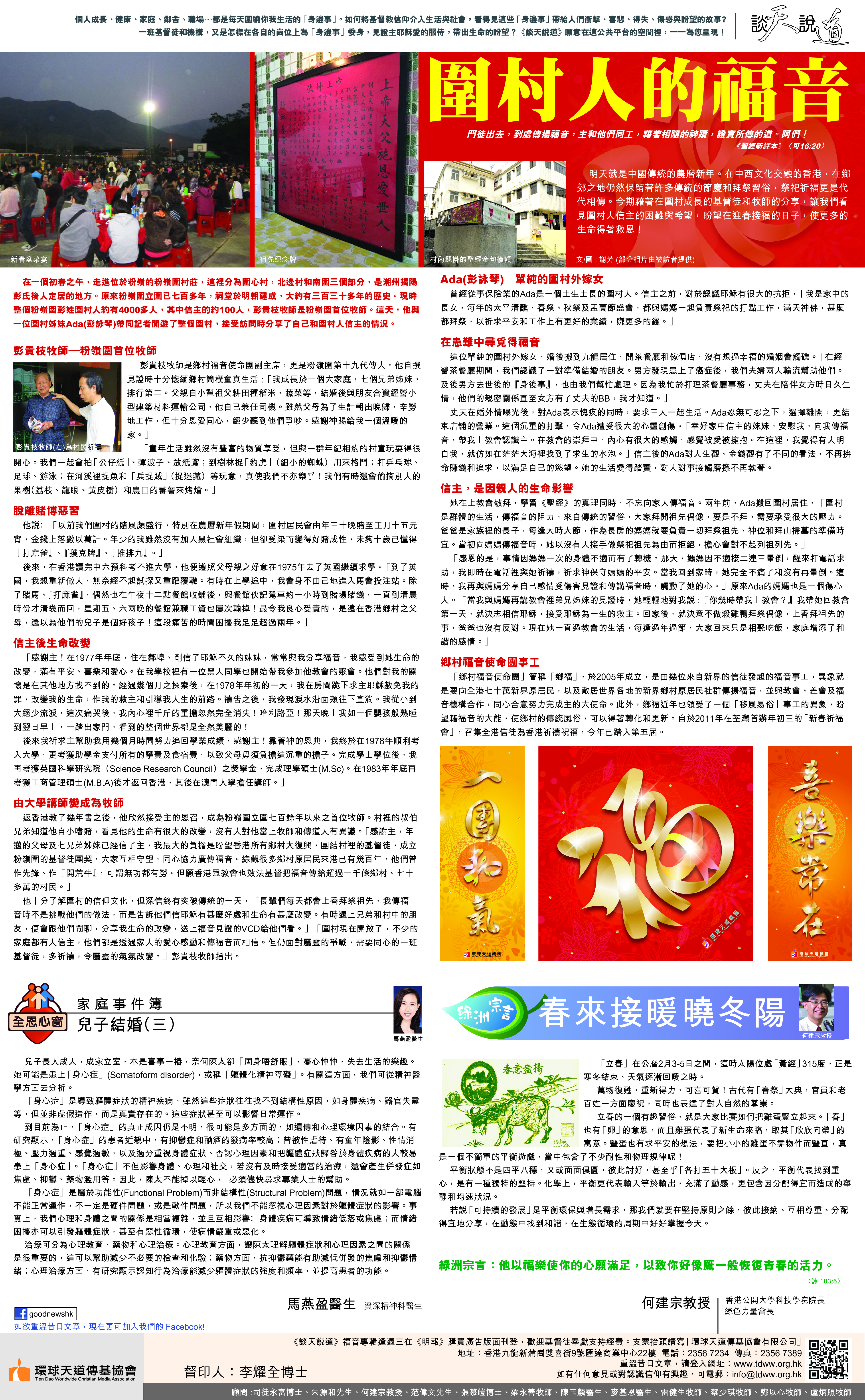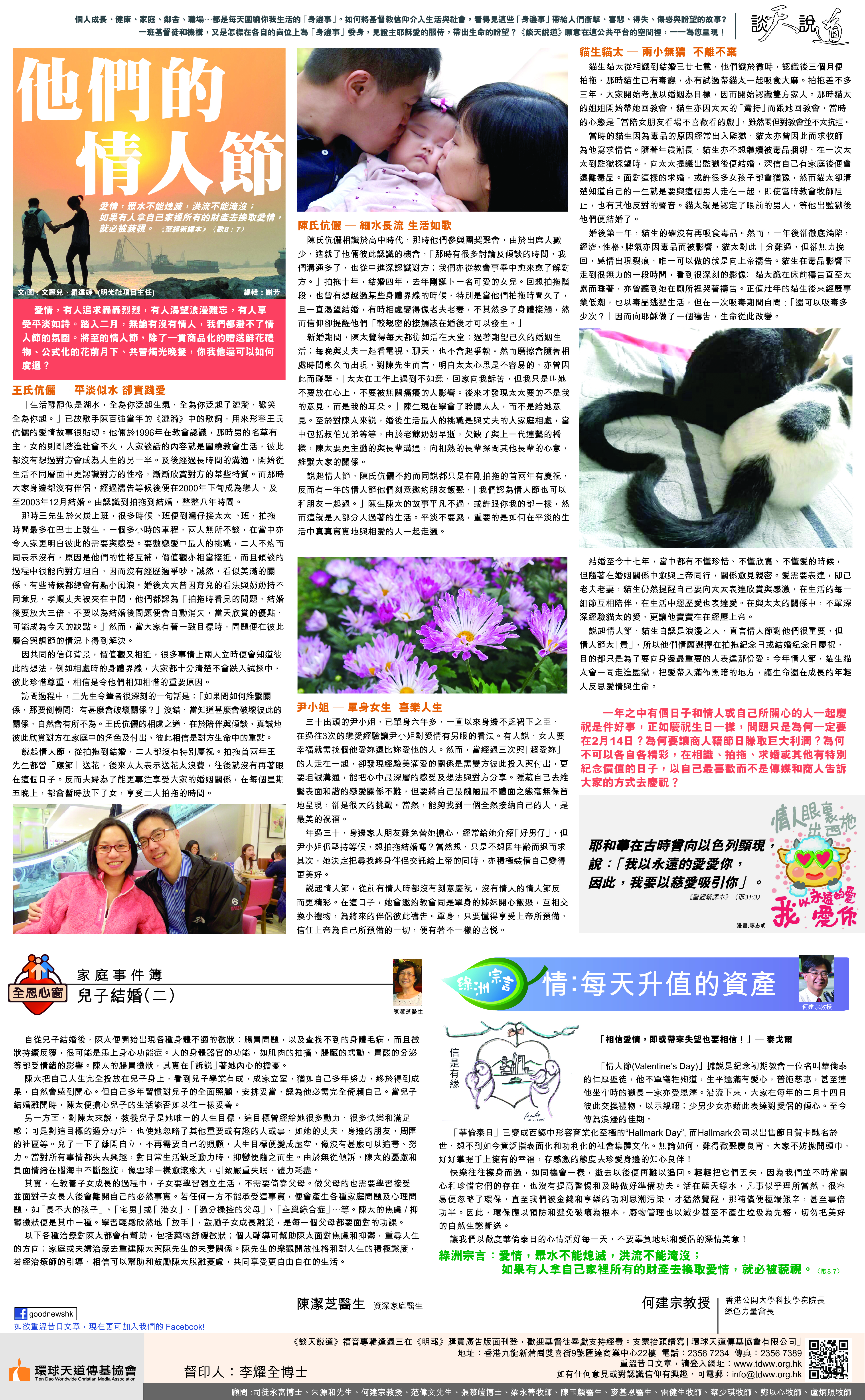 《談天說道》福音專輯逢週三在《明報》購買廣告版面版登,本期為2015年2月25日,歡迎奉獻支持經費。