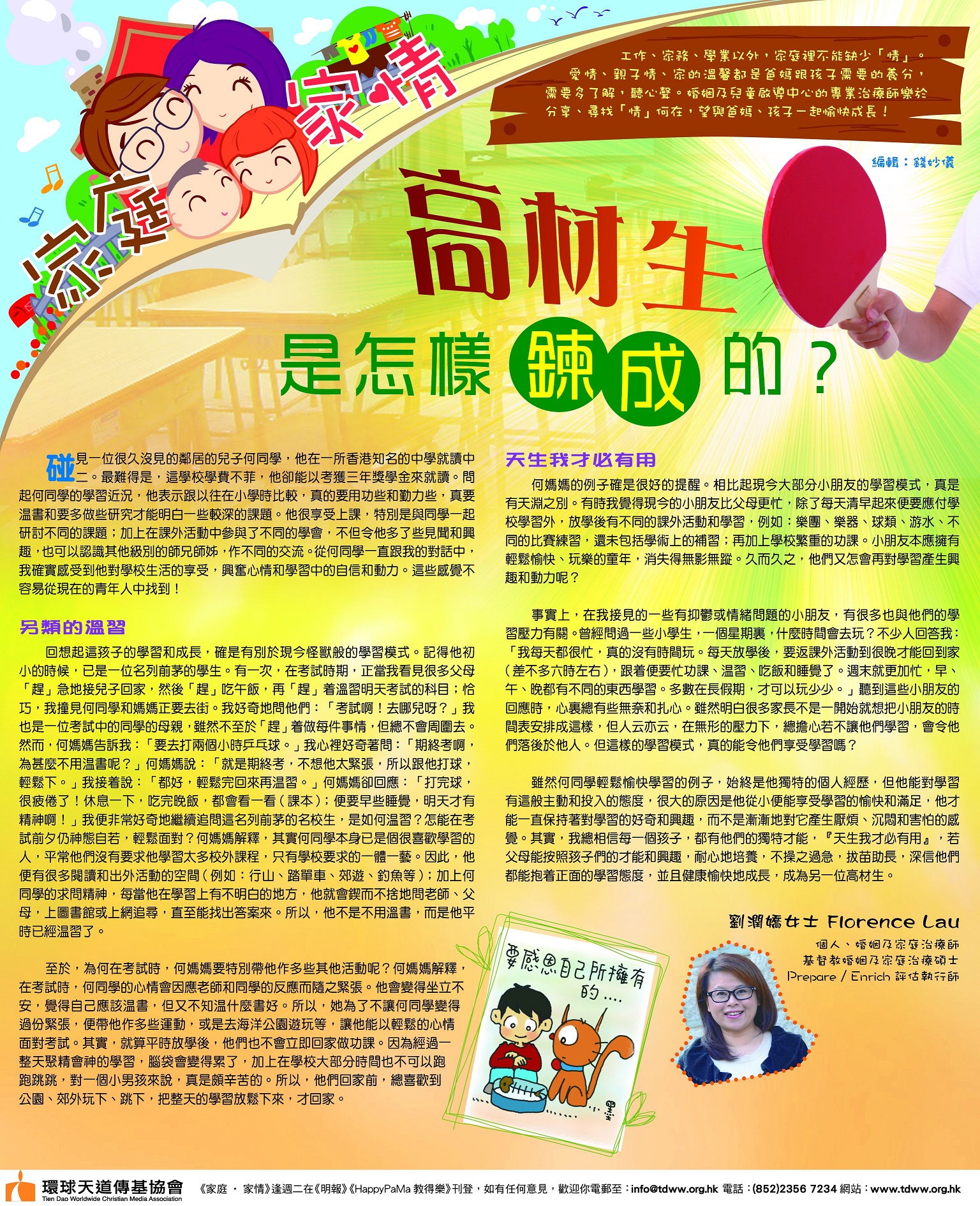 《家庭‧家情》逢週二在《明報》教得樂刊登,本期為2015年6月30日,歡迎奉獻支持經費。